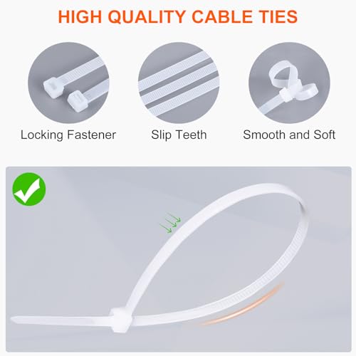 Qualità durevole: Fascette elettricista PA6.6 con una resistenza alla trazione di 50 libbre e un intervallo di temperatura di esercizio da -40°C a +185°C. Alta resistenza, anti-invecchiamento, forte capacità portante.