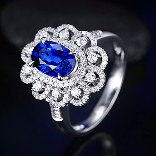 Titolo: Epinki Anello Donna Oro Bianco 18K Zaffiro 2ct Blu Ovale con Diamante Fiore Cavo di Lusso Misura 9