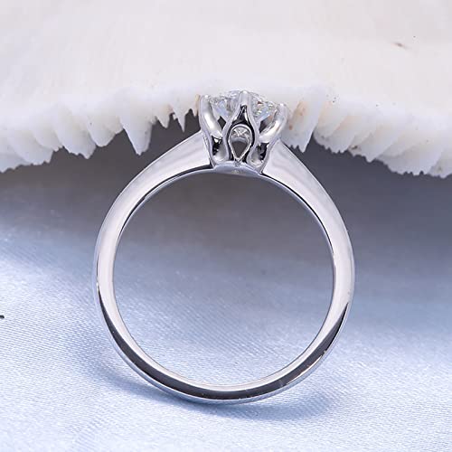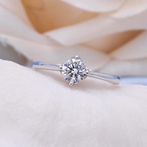 Epinki Fedine Fidanzamento, Anello Donna Oro Bianco 14K 4 Artiglio Diamante 0.3ct Misura 7