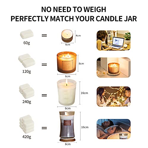 ❤️【Nessuna pesatura, fare candele con precisione】Non importa che tipo di barattoli di candela hai in casa, una cera soia da 60g può salvarti dalla pesatura. Una volta che la cera soia si è sciolta, puoi versarla nel barattoli di candela e adattarne la capacità in modo accurato, rendendo più conveniente per te fare le candele. Vai e controlla la terza immagine per vedere quale barattolo di candela hai, quindi saprai quanti pezzi di cera di soia devi mettere per fare la candela.