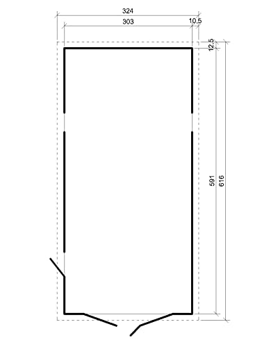 Il garaggio è dotato di finestre, che consentono una buona illuminazione naturale e una visibilità ottimale all’interno della struttura. La sua forma rettangolare, con dimensioni di 222 cm di larghezza, 616 cm di lunghezza e 324 cm di altezza, permette di ospitare facilmente una vettura di dimensioni medie, una bicicletta, attrezzi da giardino e qualsiasi altro oggetto che richieda un deposito.