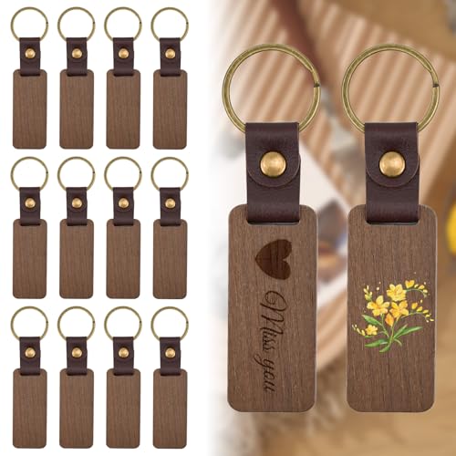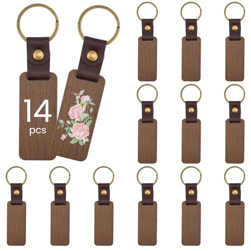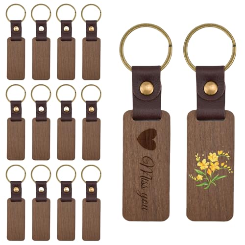 HEKOBAG 14 Pezzi Portachiavi in Legno Portachiavi in Legno da Incidere Portachiavi Legno con Ciondolo Quadrato Portachiavi Legno Vuoti per Scrivere/Disegnare Regali Artigianali, Diametro 1,18 Pollici