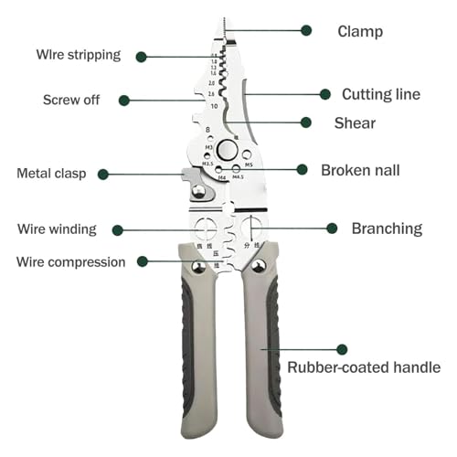 【Forte praticità】Il tagliacavi è uno strumento multifunzionale che può essere utilizzato per vari compiti elettrici. Può soddisfare le vostre esigenze di taglio, spelatura, crimpatura, avvolgimento, spaccatura, avvitamento e altre operazioni elettriche.