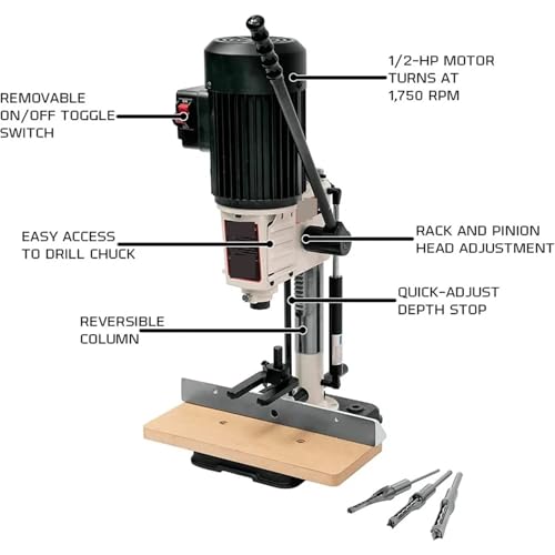 JOXLOVER Trapano a Colonna da banco, Mortasatrice da banco, scalpello da 1/2″, Corsa 4-3/4″, per Fai da Te in Metallo e Legno