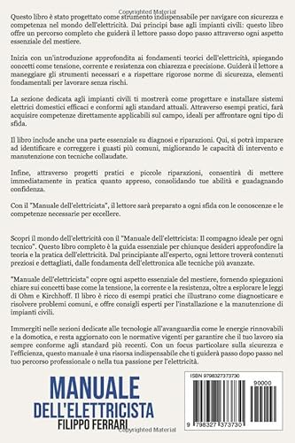 Questo manuale è un’ottima scelta per ogni tecnico elettrico, fornendo un percorso completo dai principi base agli impianti civili. Il testo è caratterizzato da una presentazione chiara e concisa, con esempi pratici e piccole riparazioni che aiutano a comprendere meglio i concetti. Il manuale è ben strutturato e facilmente navigabile, rendendolo un’ottima risorsa per chi vuole approfondire la sua conoscenza dell’elettricità. Consigliato per chi cerca un compagno ideale per la propria formazione professionale.
