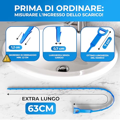 CARATTERISTICHE: EXTRA LUNGA 63 CM – Ogni centimetro è importante, perché la maggior parte delle ostruzioni si trova all’inizio del tubo. Rispetto ad altre sonde stura tubi, hai più possibilità di rimuovere l’ostruzione!