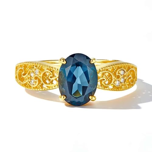 Memoire – Anello vintage vintage con topazio ovale in oro giallo, 65 (20.7), Oro giallo 14 carati, Topazio