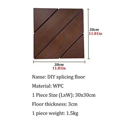 CARATTERISTICHE: 【Piastrella in legno di plastica per giunzioni multifunzionali】 Soluzione perfetta per coprire il tuo patio o balcone. Le piastrelle del decking sono resistenti alle intemperie, molto robuste ed estremamente facili da curare. Non sono adatti solo per l’uso esterno, ma possono essere utilizzati anche all’interno.