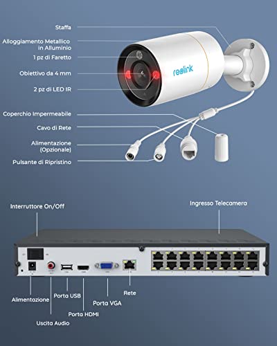CARATTERISTICHE: 【12MP UHD Immagine Incredibile】Con la risoluzione a 12MP e il campo di visione a 97°, le telecamere PoE di questo sistema offrono una visione completa del mondo circostante, catturando più dettagli delle quelle 5MP. Non si perderà nessun cosa sospetta.
