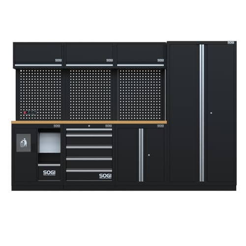 Sogi ARR-OFF-2955-L Arredamento modulare in lamiera per officina e garage – piano in legno – 2955x465x2000 mm