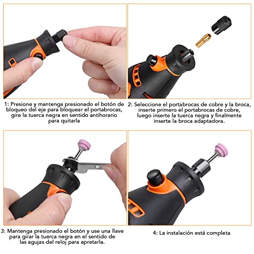 Strumento Multifunzione Vastar è ampiamente utilizzato in molti scenari, come la levigatura e la lucidatura di superfici ruvide, l’intaglio del legno, ecc. Per garantire un funzionamento regolare, il mandrino deve essere oliato regolarmente. Questo prodotto funziona sempre con un tocco sensibile per non compromettere l’efficienza del miniutensile. Durante la lucidatura, la pulizia, la smerigliatura o la levigatura, non è necessario esercitare una pressione radiale troppo forte sulla punta dell’accessorio.