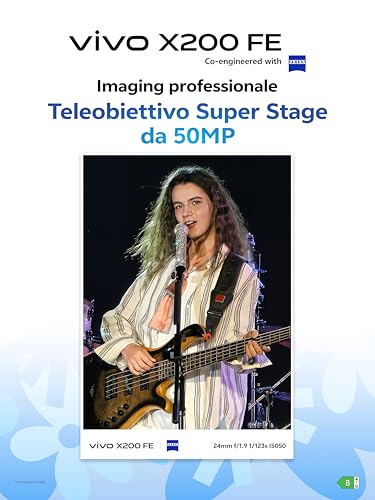 Lo smartphone VIVO X200FE 5G si distingue per la collaborazione con ZEISS, offrendo un teleobiettivo da 50MP per scatti dettagliati. Lo schermo Master Color da 6.31″ garantisce vividezza, mentre le opzioni RAM (12+12GB) e storage (512GB) assicurano performance fluide. Parte del processore Dimensity 9300 plus e la protezione IP68+IP69 sottolineano la durabilità. La batteria da 6500mAh combina con la ricarica rapida a 90W, ideale per chi cerca praticità. La caratteristica NFC e il design Blue Breeze aumentano l’appeal estetico, rendendolo una scelta versatile per forti utenti.
