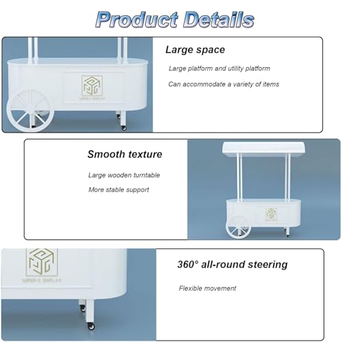 ❤ Robusta capacità di peso: il carrello delle caramelle con ruote può contenere 100 kg, offrendo ampio spazio per mostrare varie prelibatezze, creazioni di torte e anche alcuni oggetti più pesanti. il versatile carrello dei dolci non solo può esporre caramelle e torte, ma può anche essere adornato con fiori, palloncini o altri elementi decorativi.