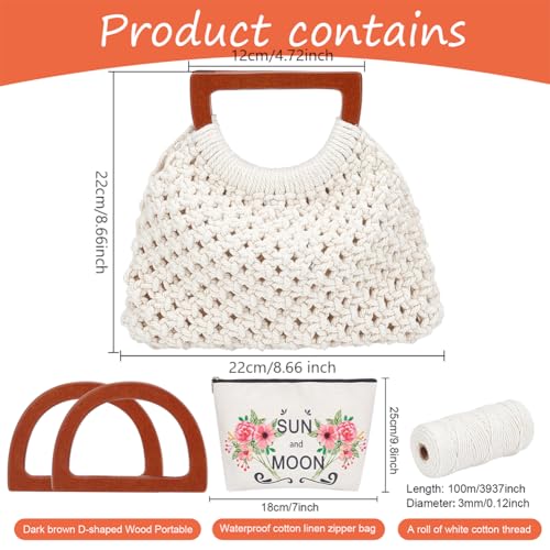 WEBEEDY Macrame Bag Kit Fai da Te per Adulti, Principianti, macramè, Borsa per Donne/Ragazze, Borsa macramè, con Manico in Legno, Set di Forniture per bricolage, Idea Regalo Boho (Naturale)