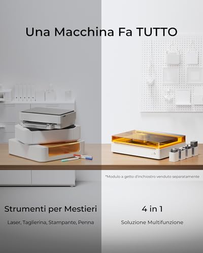 – Espandibilità per Possibilità Infinite: xTool M1 Ultra laser incisore per legno e metalli è progettato per espandersi, offrendo accessori per migliorare la funzionalità, tra cui modulo inkjet, pressa a caldo, base rialzata e attacco rotante. Questi accessori ti permettono di affrontare progetti sempre più diversi e vivaci. Che tu voglia ampliare le tue capacità di crafting o esplorare nuovi percorsi creativi, le opzioni di accessori di M1 Ultra garantiscono innovazione continua e creazioni eccezionali