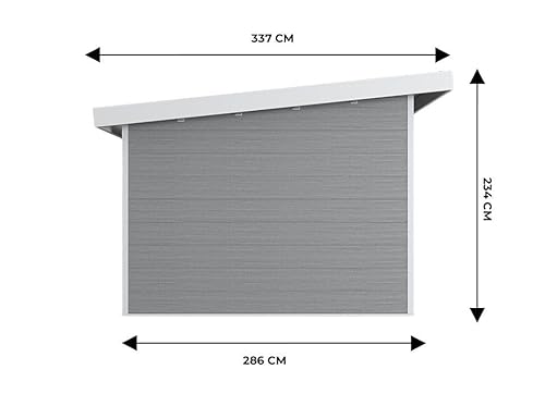 Casetta da giardino in composito ALMA – 11 m2 Grigio chiaro – Spessore delle assi: 28 mm – Falegnameria in alluminio – Casetta da giardino