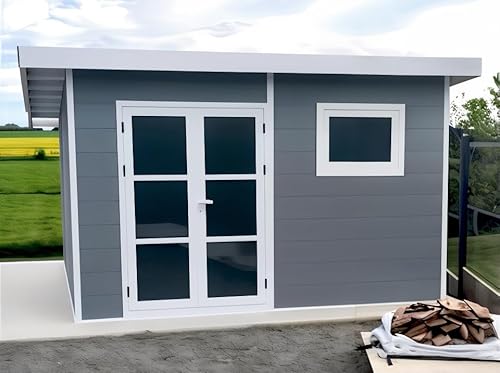 CARATTERISTICHE: 🏠 – VERSATILE – La casetta da giardino ALMA in legno composito offre una superficie di 11 m², ideale per ospitare le vostre attrezzature più grandi, come tosaerba, biciclette e mobili da giardino.