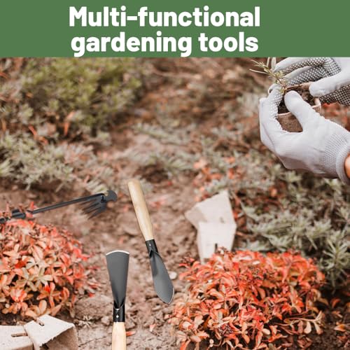 🍃[Ampiamente usato]: Utensili da Giardino è adatto per pulire le comuni erbacce quotidiane e può essere utilizzato anche per piantare fiori e verdure, ecc., consentendo di allentare il terreno, trapiantare, scavare, diserbare e altri compiti in modo più semplice e veloce, è il miglior compagno nella vita.