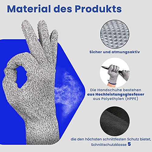 I guanti antitaglio con puntini in silicone antiscivolo sono un’innovazione che combina la protezione da taglio con la comodità di utilizzo. Il livello 5 di protezione da taglio garantisce una elevata protezione per le mani durante le attività di cucina, giardinaggio e intaglio del legno. I punti in silicone antiscivolo sono un’altra caratteristica utile per evitare che il cibo o gli strumenti scivolino dalle mani.
