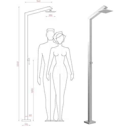INOXSTYLE Doccia per Esterno in Acciaio AISI 316L Tecno Cube ML Stylo lucidata a Mano, con Miscelatore e lavapiedi