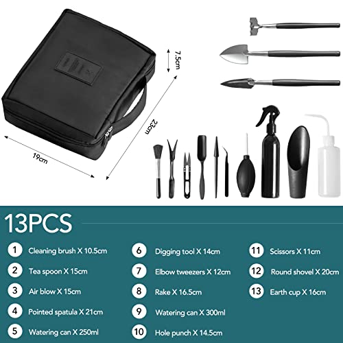 iYinJuan Set di Attrezzi per Piante grasse,13 Pezzi, Mini Utensili da Giardino Kit Bonsai con Forbici, Trapiantare Tool Annaffiatoio etc, per la Cura di Piante in Miniatura in Interni