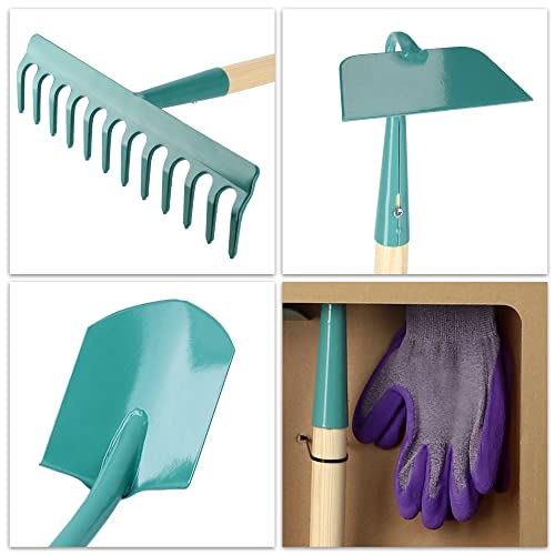 KADAX Set di Attrezzi da Giardinaggio, Include Vanga a Punta, Rastrello a Denti Diritti, Zappa Quadra e Guanti Protettivi, Accessori per il Giardino