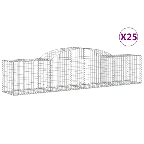 KLYEON Cesti Gabbioni ad Arco 25 pz 300x50x60/80 cm Ferro Zincato,Barriera per Giardino Multiuso | Muro di Gabbie in Metallo | Riempibile con Rocce o Ghiaia Vasi e fioriere