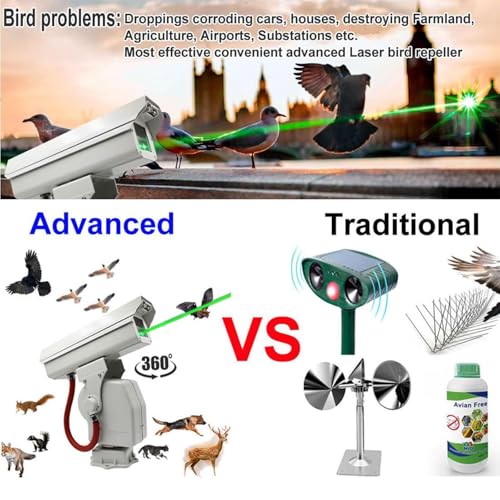 LJCSSD Repellente per Uccelli Laser a 360° è un dispositivo innovativo per la protezione degli ambienti esterni.Thanks doispositivi laser a 360°, scansioin tutta l’area di 300 m². Grazie al suo design impermeabile IP66, è resistente a pioggia e umidità. Controllabile tramite app, permette una configurazione personalizzata e un monitoraggio remoto. Efficace per fattorie, aeroporti e aree agricole, riduce la presenza di uccelli senza l’uso di prodotti chimici. Prestazioni elevate e installazioni semplici lo rendono una soluzione affidabile.