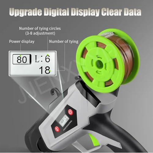 【TENUTA REGOLABILE】Il cavo metallico della legatrice elettrica per viti offre una tenuta personalizzabile con 3-8 ingranaggi regolabili, consentendo di fissare saldamente i rami in base ai requisiti specifici delle diverse colture (più cerchi, più stretto è il fascio; per steli e viti delicati, si consiglia di utilizzare il livello 3; per evitare che il fascio venga legato troppo stretto e danneggi il raccolto)