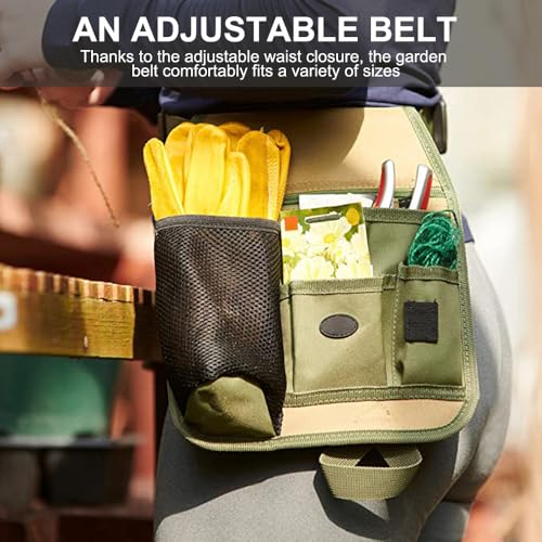 CARATTERISTICHE: Tutto a portata di mano: tieni i tuoi strumenti a portata di mano a livello della vita con questa comoda cintura per riporre gli attrezzi. Questo portautensili da giardino multi-tasca dispone di una grande tasca con cerniera e 5 tasche aggiuntive con molto spazio per tutti i tuoi strumenti portatili, artisti e accessori da giardinaggio, uno dei migliori regali di giardinaggio per uomini e donne.