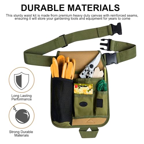 Marsupio regolabile per attrezzi da giardinaggio – organizer multi-tasca con 6 tasche marsupio per attrezzi da giardino, Oxford impermeabile per casa, giardino, camper, pulizia (verde militare)