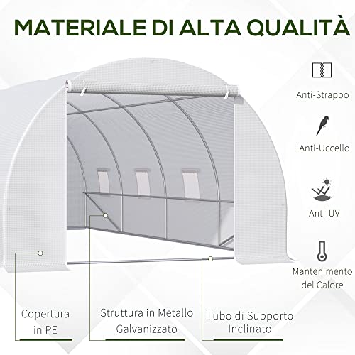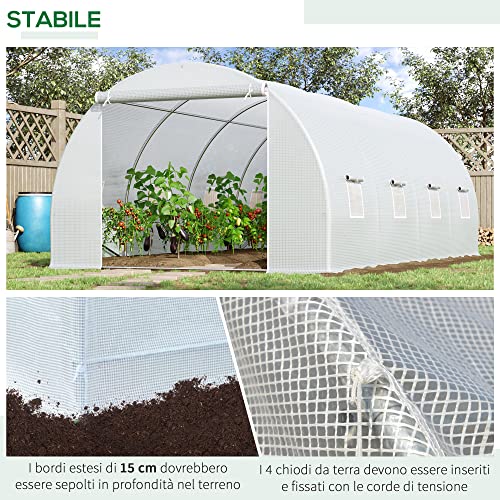 Outsunny Serra da Giardino a Tunnel Per Piante in PE con Tubi di Metallo 6x3x2m Bianco