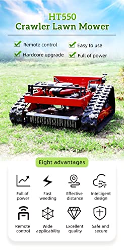 CARATTERISTICHE: ✔️ SICUREZZA – Il cingolato della falciatrice può essere azionato fino a 200 metri di distanza tramite telecomando. La nostra biella idraulica recentemente aggiornata lo mantiene stabile mentre falcia in pendenza, aumentando ulteriormente la sicurezza su pendii ripidi fino a 45 gradi.