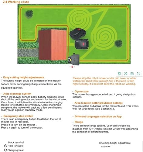 Il kit di installazione incluso agevola notevolmente il processo di configurazione, rendendo l’utilizzo accessibile anche a chi non possiede competenze tecniche avanzate. Completo di strumenti e guide passaggi, ogni utente può installare il robot tosaerba in modo rapido e sicuro, garantendo che funzioni al meglio. Inoltre, la possibilità di regolare le impostazioni in base alle proprie esigenze permette di adattare il dispositivo alle caratteristiche del proprio prato o giardino.