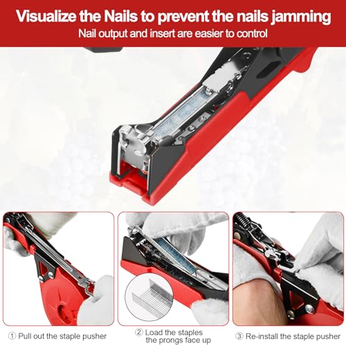 🏠 Più Veloce e Più Amichevole: Attrezzi giardinaggio presenta il design del perno di spinta senza smontaggio. La fessura per punti metallici visibile semplifica il posizionamento e l’estrazione dei punti metallici da giardino. Il suo funzionamento rapido può legare più piante rispetto ad altri vecchi modelli di macchine a nastro.