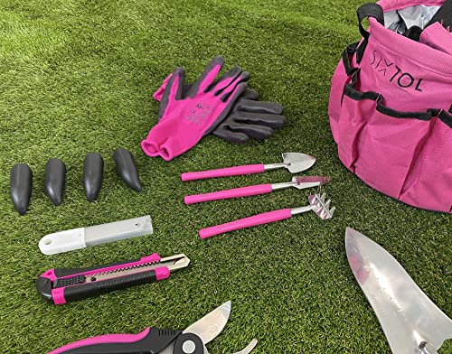 SIXTOL Garden PINK – Set di 10 attrezzi da giardino, 10 pezzi, accessori da giardino in acciaio inox, pratica borsa da giardino come regalo per donne, per giardinieri e donne