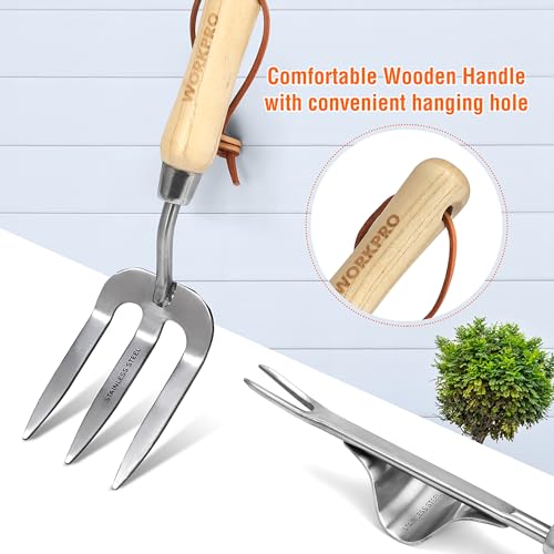 WORKPRO Attrezzi e Utensili da Giardino 8 Pezzi, in Acciaio Inossidabile con Borsa, Include Forbici per Potare, Cazzuola per Trapianto, Paletta per Terreno, Forcola e Rastrello a Mano