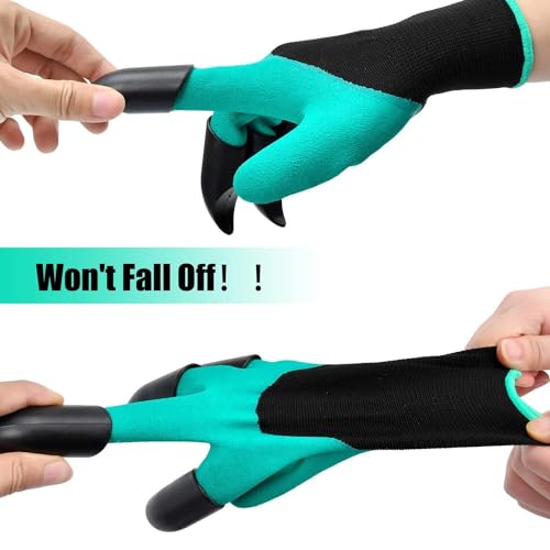 CARATTERISTICHE: 2 paia di guanti da giardino con 4 artigli in plastica ABS resistenti integrati su ogni mano.