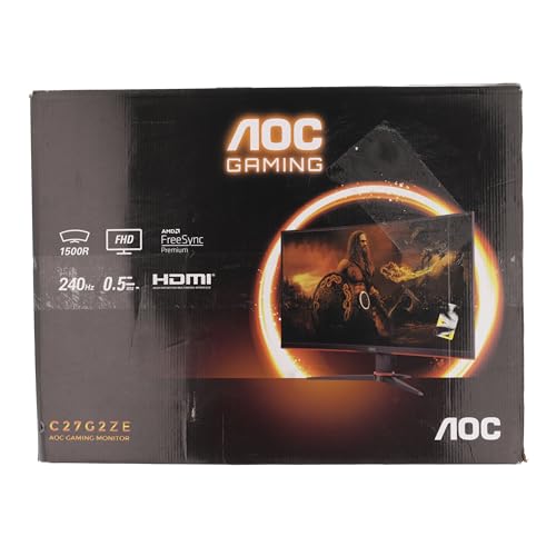 AOC Gaming C27G2ZE – Monitor curvo FHD da 27 pollici, 240 Hz, 0,5 ms, FreeSync Premium (1920 x 1080, HDMI, DisplayPort), nero/rosso