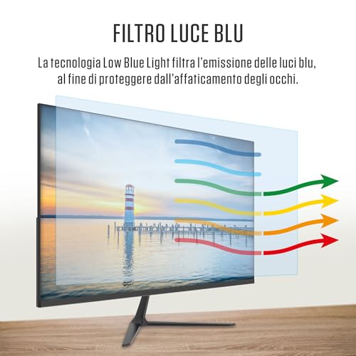 [4] – Frameless & Borderless: Il design senza cornice (frameless) consente configurazioni multi-monitor senza soluzione di continuità // Blue Light Filter: Il filtro per la luce blu riduce le emissioni di luce blu, senza alterare i colori dello schermo (efficace per protegge i vostri occhi e i vostri dati). L’uso di una speciale tecnologia LED capace di spostare il picco di lunghezza d’onda dai dannosi 450nm ai più sicuri 460nm, permette la riduzione della luce blu di oltre il 90%.