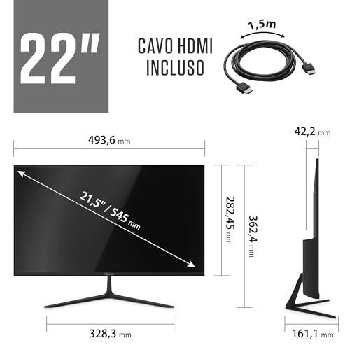CARATTERISTICHE: [1] – Monitor 22″ (21.5″) con tecnologia VA e risoluzione 1920×1080 (FHD) // Frequenza di aggiornamento a 75Hz, il pannello riproduce 75 fotogrammi al secondo (il 25% in più di quanto riprodotto dalla maggior parte dei normali pannelli in commercio).