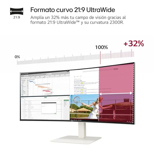 L’ecran LG 38WR85QC è un monitor da PC di grandi dimensioni, misurante 38 pollici, che offre una risoluzione QHD (3840 x 1600 pixel) e una curva incurvata di 1900R. Questo monitor è progettato per offrire un’esperienza di visualizzazione immersiva e panoramica, ideale per le attività di lavoro, la creazione multimediale e il gioco.