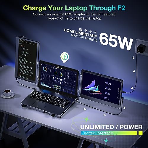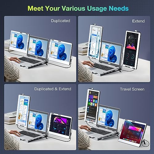 CARATTERISTICHE: Stazione di lavoro con triplo monitor portatile: il triplo monitor portatile Kwumsy F2 adotta un design rivoluzionario, risolvendo completamente le limitazioni sulle dimensioni del laptop e i punti dolenti di non essere in grado di regolare arbitrariamente l’angolo dello schermo. Il monitor portatile per laptop presenta una struttura interamente in lega di alluminio che può essere regolata in dimensioni per ospitare laptop di diverse dimensioni. Il doppio schermo aggiuntivo da 14 pollici non esercita alcuna forza esterna sul laptop, fornendo meglio Protezione