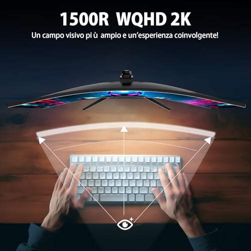 Minifire Monitor Gaming Curvo, PC monitor 32 pollici Ultrawide WQHD(2560 x 1440), 180Hz, 1Ms, VA (1500R), UltraLarge, 2xHDMI 2.1 (144HZ), DP 1.2 (180Hz), AdaptiveSync, sRGB125%, DCI-P3 90%, VESA