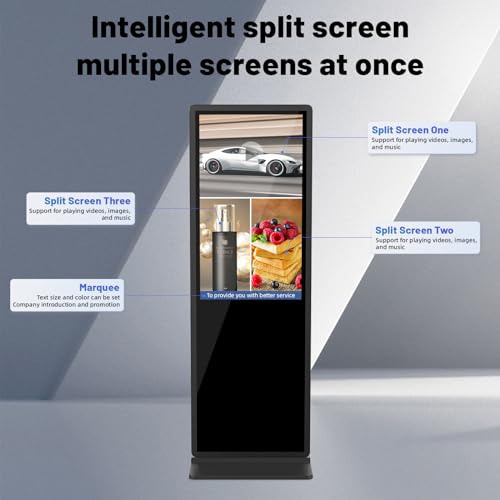 CARATTERISTICHE: Schermo diviso intelligente: funzione Smart Split Screen per visualizzare più formati di contenuto come immagini, video, animazioni e altro ancora. Personalizza le dimensioni, la posizione e l’orientamento di ciascuna area di contenuto per un controllo preciso del layout. Ideale per visualizzare più pubblicità, promozioni o messaggi di marca affiancati.