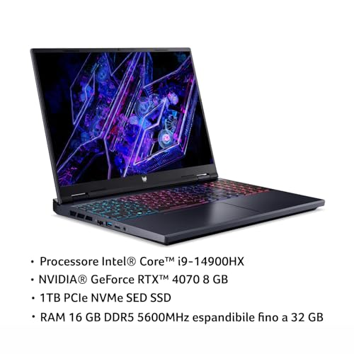 Acer Predator Helios Neo 16 PHN16-72-99FK Notebook Gaming, Processore Intel Core i9-14900HX, RAM 16 GB, 1024 GB SSD, Display 16″ WQXGA IPS 240 Hz, NVIDIA GeForce RTX 4070 8 GB GDDR6, Windows 11 Home