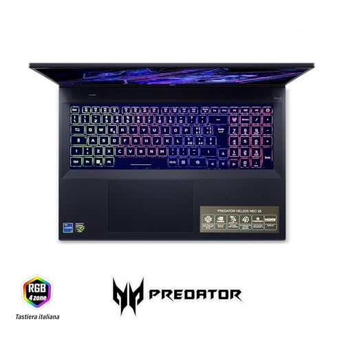 Acer Predator Helios Neo Notebook Gaming, Intel Core i9-14900HX, 24core fino a 5,8 GHz, RAM 32Gb DDR5, 1Tb SSD, Display 18″ WQXGA IPS 165Hz, DCI-P3 al 100%, RTX 4060, Win 11, Preconfigurato