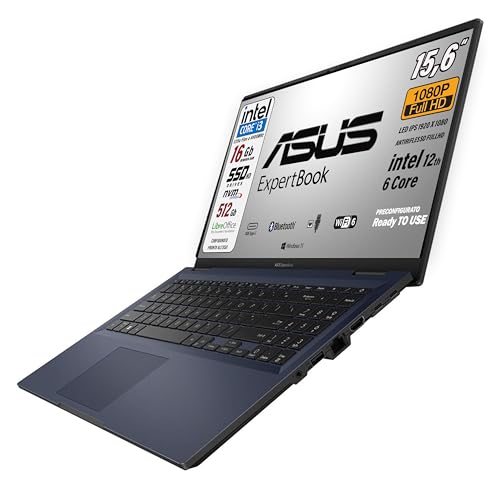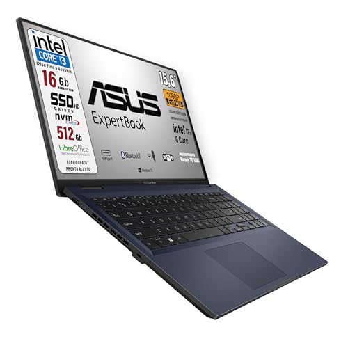 ASUS Expertbook, PC Portatile, cpu Intel Core i3 12Th 6Core, RAM 16 Gb, SSD PCIe Nvme 512 Gb, 15,6″ FullHD antiriflesso, Wi-Fi 6, 4 USB, BT, lan, Intel Uhd, Win 11, preconfigurato