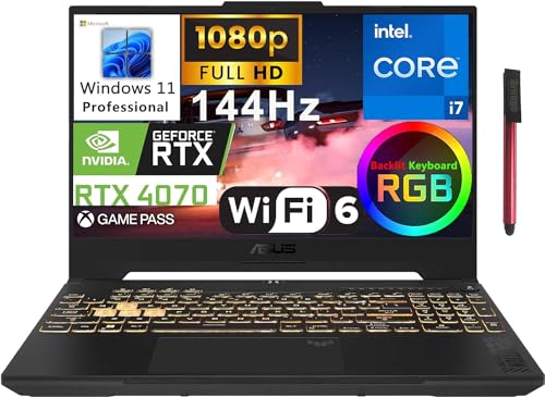 ASUS TUF F15 15.6″ FHD 144Hz Laptop da gioco, Intel 14-Core i7-12700H, GeForce RTX 4070 8GB, 64GB DDR4 RAM, 2TB PCIe SSD, WiFi 6, Bluetooth 5.2, tastiera retroilluminata RGB, Windows