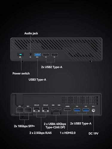【Velocità di rete super veloce】2 porte di rete SFP+ da 10 Gbps, che supportano l’aggregazione dei collegamenti; 2 porte di rete RJ45 da 2,5 G con I226-LM e I226-V (I226-LM supporta Windows Server); 2 interfacce USB4, che supportano Thunderbolt Ethernet da 20 Gbps. Riassumendo: una velocità di trasmissione di rete totale fino a 65 Gbps. Con così tante interfacce ad alta velocità, puoi scaricare e accedere rapidamente ai tuoi documenti NAS.